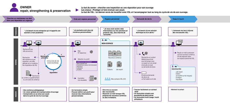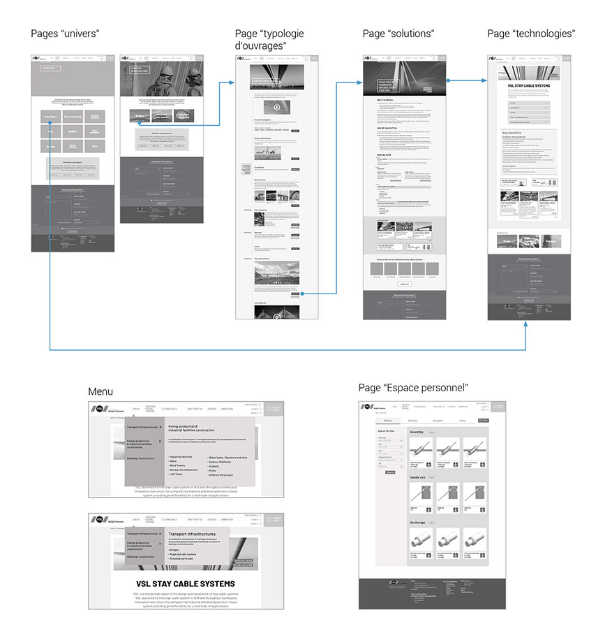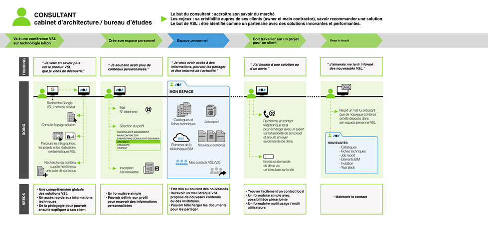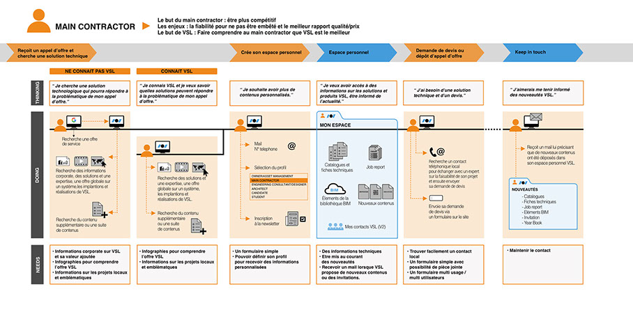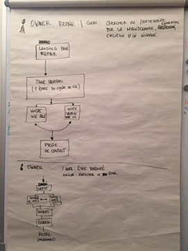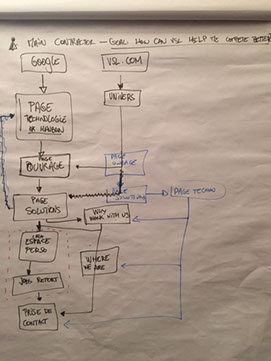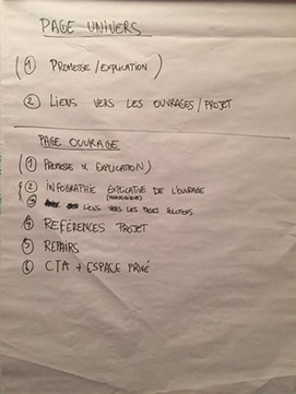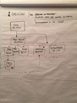 avec le client pour déterminer les parcours utilisateurs suivant leurs fonctions et le contenu indispensable de certaines pages